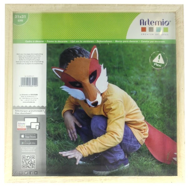 Cadre photo vitrine (plexiglass), en bois, au format photo intérieur 31 x 31 cm. Personnalisez le avec du papier, des serviettes, de la peinture, des pochoirs, des tampons, des rubans, des objets de la nature… au gré de votre créativité.