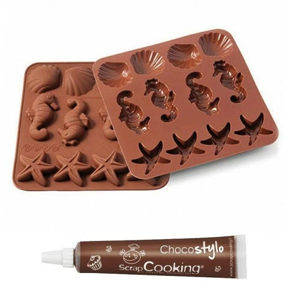 Description de Moule en silicone chocolats vie sous-marine + Stylo chocolat