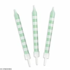 De gros 🎁 ScrapCooking Bougies Anniversaire Bougies Vert D’eau à Rayures Blanches – 12 Pcs 👏