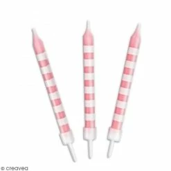 Vente flash ⌛ ScrapCooking Bougies Anniversaire Bougies Roses à Rayures Blanches – 12 Pcs ✨