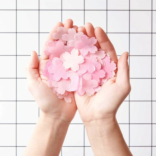 Ces confettis en forme de fleurs de cerisier dans les tons de rose pourront décorer une table festive, être lancés lors de la sortie des mariés ou d’un anniversaire par exemple. Vous pourrez aussi les coller dans un projet DIY !