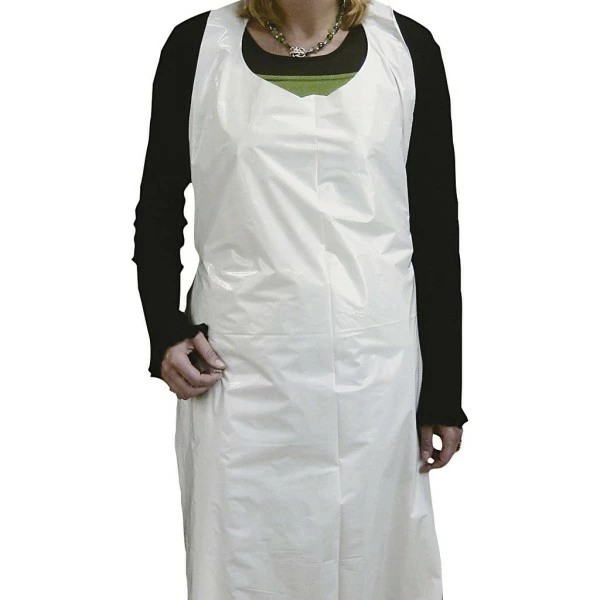 Tablier léger et confortable en plastique blanc.