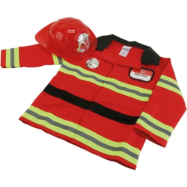 Belle veste et casque de pompier de bonne qualité avec de jolis détails. Renforce l’imagination et le jeu de rôle