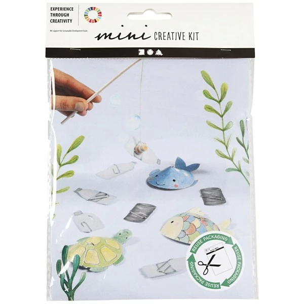 Ce mini kit crĂ©atif spĂ©cial recyclage de Creotime permettra Ă vos enfants de rĂ©aliser un mini jeu de pĂȘche Ă la ligne grĂące au matĂ©riel de ce kit tout en rĂ©utilisant et l’emballage pour les aider Ă complĂ©ter leur crĂ©ation !