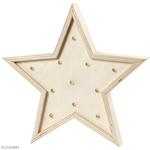 Description de Forme LED en bois à décorer – Etoile – 26 x 26 cm
