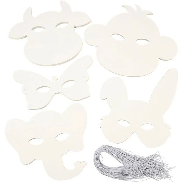 Description de Masques d’animaux, h: 13-24 cm, l: 20-28 cm, 100 pièces, blanc