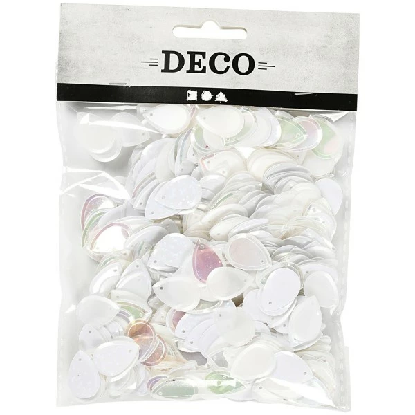 DonnĂ©es techniques pour Sequins gouttes – Blanc – 1,4 x 1,9 cm – 50 gr
