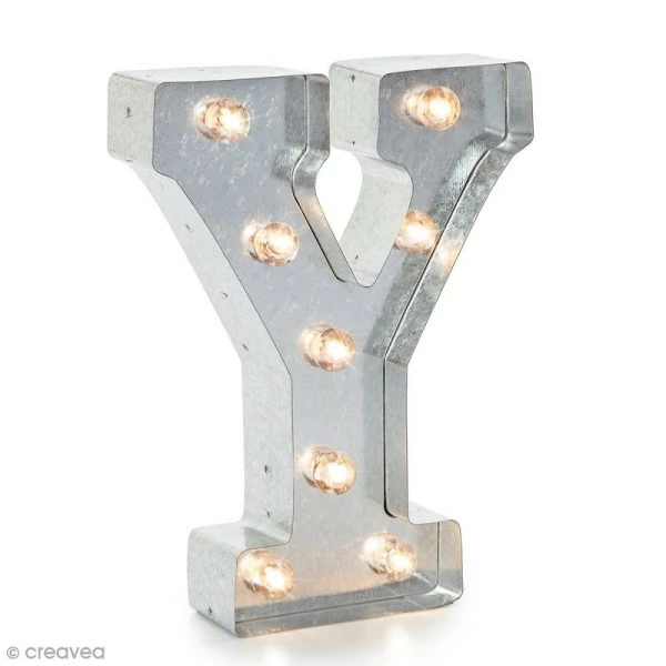 Cette lettre lumineuse Y en métal, appelée également « lettre de marquise » permet de décorer facilement son intérieur avec une jolie touche de vintage. Elle mesure 25 x 19 x 4,5 cm et tient facilement debout grâce à sa base plate.