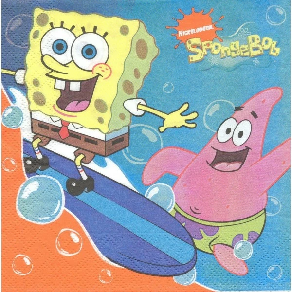 Description de 4 Serviettes en papier Bob l’éponge en Surf Format Lunch Decoupage Decopatch 2120759 Decorata