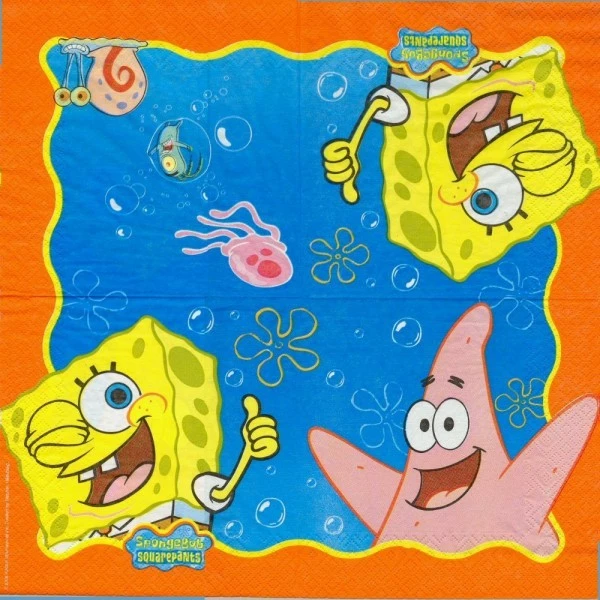 Données techniques pour 4 Serviettes en papier Bob l’éponge Format Lunch Decoupage Decopatch 29183 Decorata