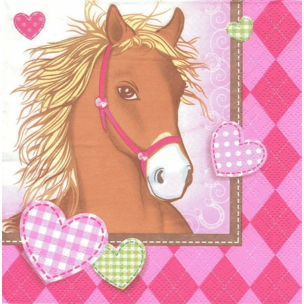 Données techniques pour 4 Serviettes en papier Cheval coeur Format Lunch Decoupage Decopatch 3021302 Decorata