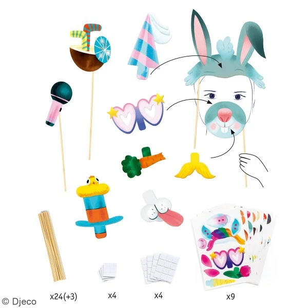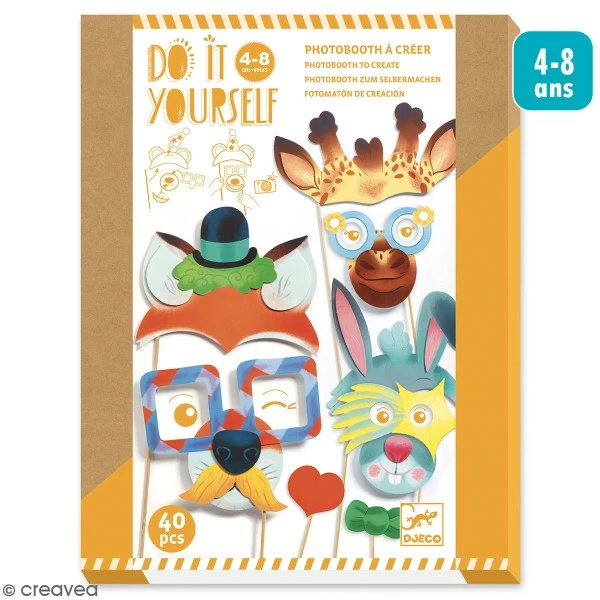 Ce jeu créatif consiste à fabriquer 40 accessoires pour créer un photobooth unique et amusant ! Les enfants adoreront assembler ses accessoires interchangeables pour créer des déguisements rigolos.