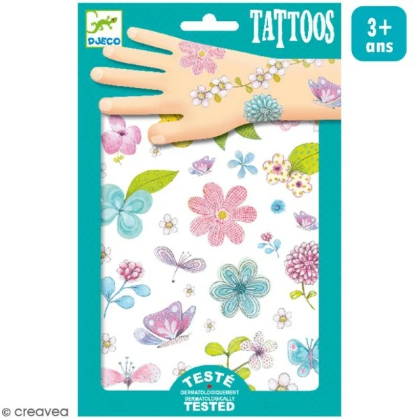 Cette planche de tatouages éphémères Belle des champs Djeco est parfaite pour embellir la peau des tout-petits, de jolis tattoos rigolos !
