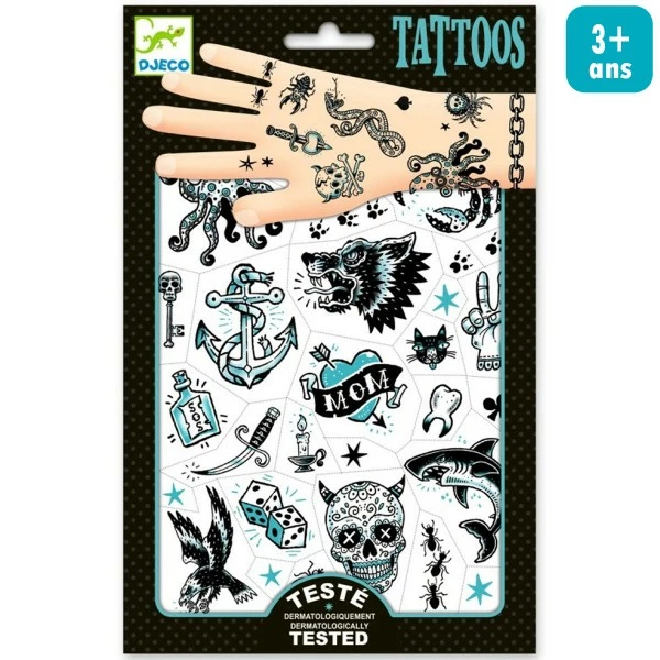 Cette planche de tatouages éphémères Dark side Djeco est parfaite pour embellir la peau des tout-petits, de jolis tattoos rigolos !