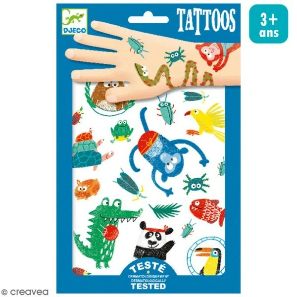 Cette planche de tatouages éphémères Museaux Djeco est parfaite pour embellir la peau des tout-petits, de jolis tattoos rigolos !