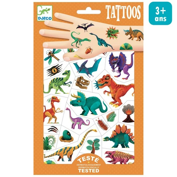Ces tatouages éphémères feront le plus grand bonheur de vos enfants ! Ces deux planches de 14 x 21 cm contient environ 53 tattoos de dinosaures en couleurs pour les enfants !