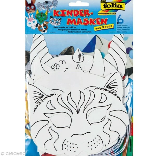 Données techniques pour Assortiment de masques à décorer pour enfant – 6 masques animaux