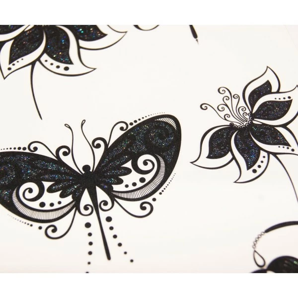 Données techniques pour 6 Tatouages temporaires – Papillons et Fleurs – Noir – Paillettes