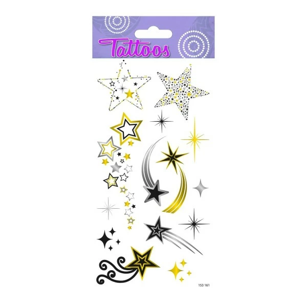 Données techniques pour Tatouages temporaires – Etoiles – Dorures