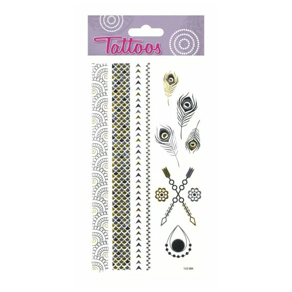 Données techniques pour Tatouages temporaires – Flèches et plumes – Noir – Dorures