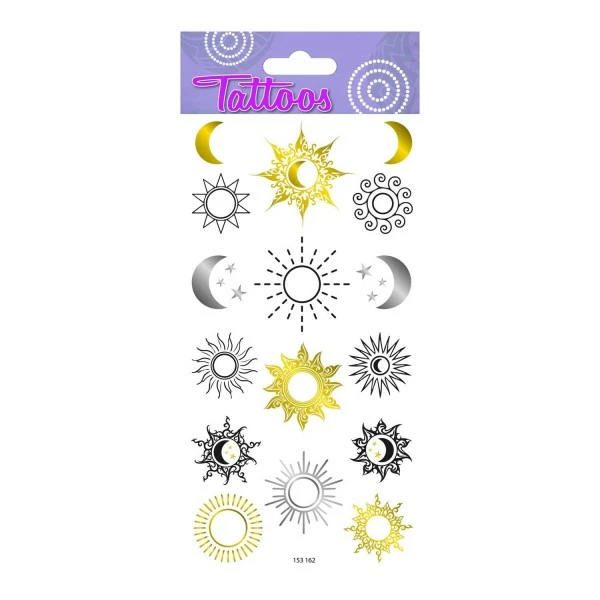 DonnĂ©es techniques pour Tatouages temporaires – Soleil & Lune – Dorures