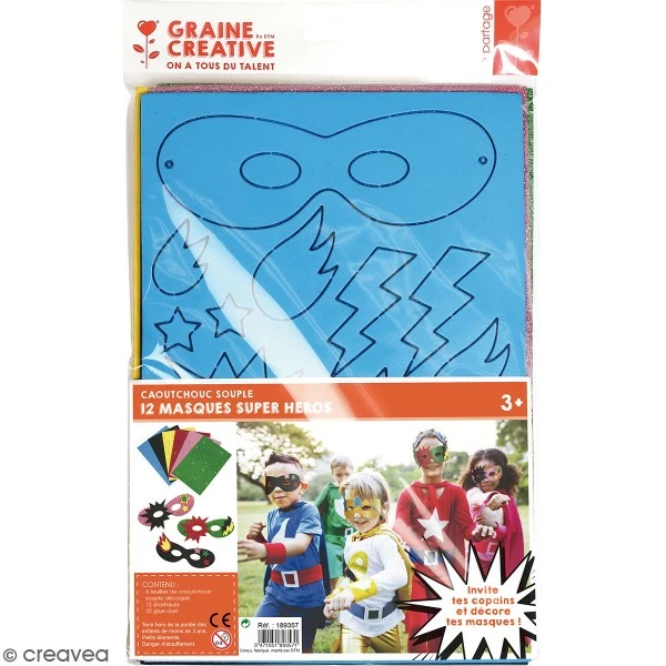 - Quantité : 12 masques à monter soi-même (à détacher des feuilles de mousse A4)