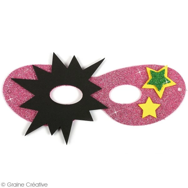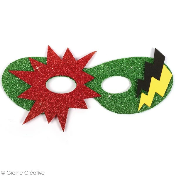 Chaque masque est doté d’un élastique, ce qui le rend prêt à l’emploi. Les feuilles de mousse multicolores et pailletées feront de ces masques Super héros, un super accessoire !