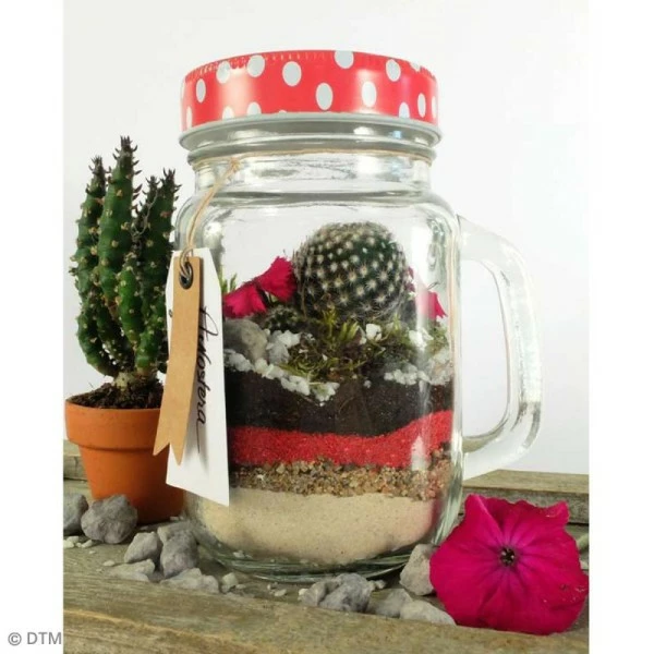 Le pot Mason jar est un mug en verre, disponible avec ou sans poignée, parfait pour contenir des boissons ou encore des préparations culinaires. La spécificité des Mason jar, est que tous ses bocaux possÚdent des couvercles qui se vissent au récipient. Ainsi, vous pourrez préserver vos recettes, sans risque de les renverser.