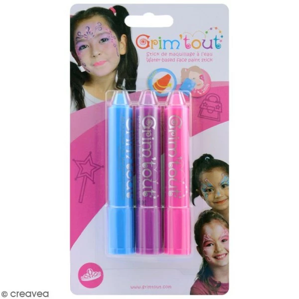 Ces 3 crayons Grimstick Princesse sont des accessoires de maquillage Ă l’eau sans paraben. N’hĂ©sitez pas Ă les utiliser pour Mardi gras, carnaval, halloween, NoĂ«l, les anniversaires, les kermesses, les soirĂ©es Ă thĂšme ou les fĂȘtes d’Ă©cole, le rĂ©veillon du nouvel an, etc.