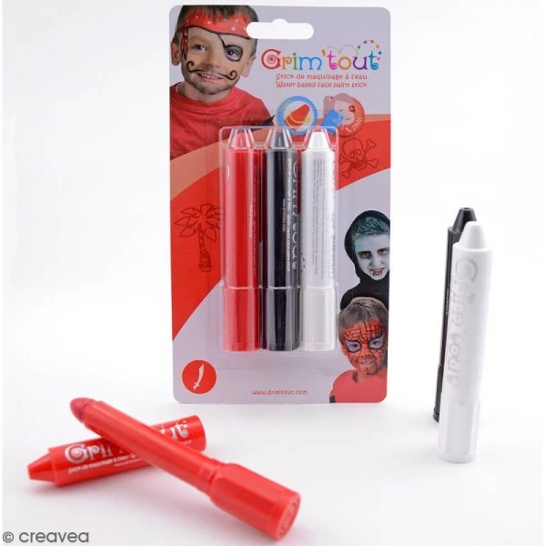 Ces 3 crayons Grimstick Vampire sont des accessoires de maquillage Ă l’eau sans paraben. N’hĂ©sitez pas Ă les utiliser pour Mardi gras, carnaval, halloween, NoĂ«l, les anniversaires, les kermesses, les soirĂ©es Ă thĂšme ou les fĂȘtes d’Ă©cole, le rĂ©veillon du nouvel an, etc.