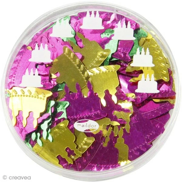 DĂ©licatement semĂ©s sur votre nappe, sous des assiettes transparentes ou sur votre chemin de table, les confettis de table GĂąteaux feront briller votre dĂ©coration et donneront un air de fĂȘte Ă votre table. Une simple poignĂ©e de confettis de tables GĂąteaux suffit Ă sublimer votre dĂ©cor. Alors pour personnaliser vos tables fĂȘtes avec Ă©clat, pensez aux confettis. Brillants et raffinĂ©s, ils constitueront la touche finale qui illuminera votre dĂ©coration.