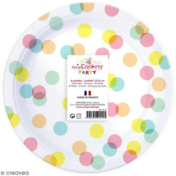 Données techniques pour Assiettes Confettis pastels 23 cm – 8 pcs