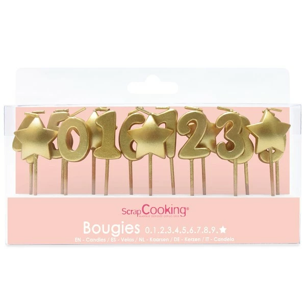Vous disposez de 15 bougies avec des chiffres de 0 Ă 9, et 5 Ă©toiles en plus pour dĂ©corer le tout. Avec leur pic en bois intĂ©grĂ©, elles sont toutes prĂȘtes Ă ĂȘtre installĂ©es sur vos belles crĂ©ations pĂątissiĂšres.