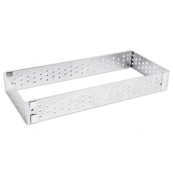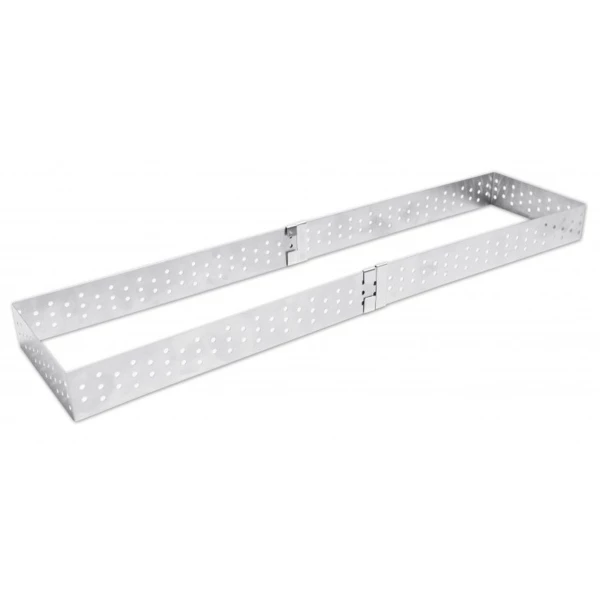 Description de Cadre à tarte en inox extensible et perforé – Rectangle – de 22 à 42 cm