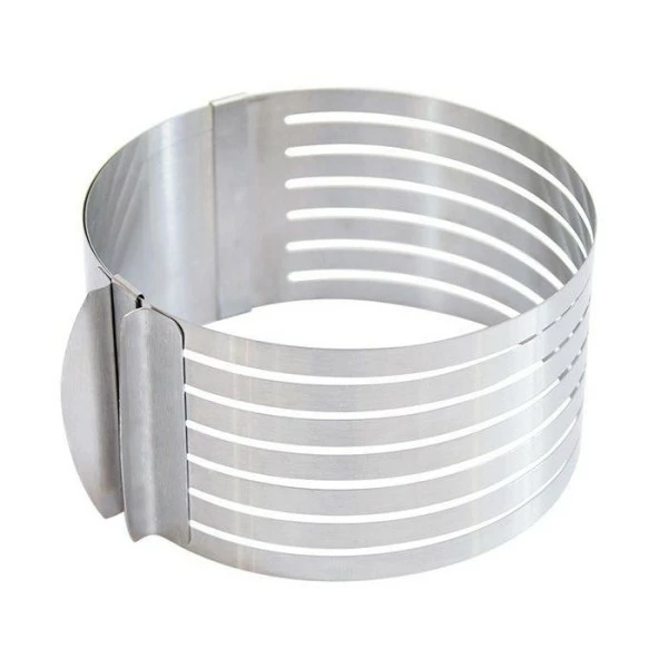 Cercle extensible en inox pour génoise – 16 à 20 cm Pour réaliser de superbes layers cakes ou tout autre gâteau à étages, ce cercle à génoise extensible vous permettra de couper bien régulièrement les différentes tranches de votre gâteau. Extensible de 16 à 20 cm, vous pourrez préparer des gâteaux ou génoises de la taille que vous souhaitez. Haut de 9 cm, vous pourrez découper jusqu’à 6 tranches de votre préparation, dans la hauteur. En Inox, vous pouvez sans problèmes, le laver dans votre lave-vaisselle et l’utiliser au four, réfrigérateur ou encore au congélateur. DimensionsØ16 à 20 cm et 9 cm de hauteur. Pour décorer vos gâteaux, découvrez les roses en papier azyme !