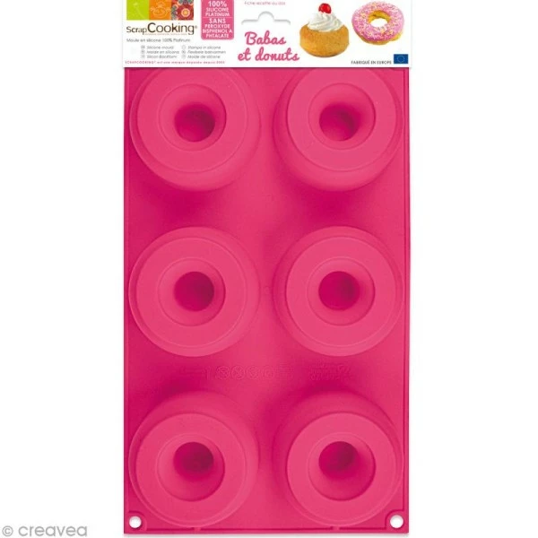 Moule en silicone avec 6 formes (spécial Babas et Donuts), pour réaliser des pùtisseries et des petits gùteaux individuels.