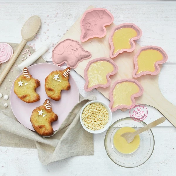 Grâce à ces moules silicones, réalisez 6 petits gâteaux rigolos en forme de Licorne. Ces moules en silicone apporteront de la fantaisie à vos goûters et vos petits gâteaux d’anniversaire !