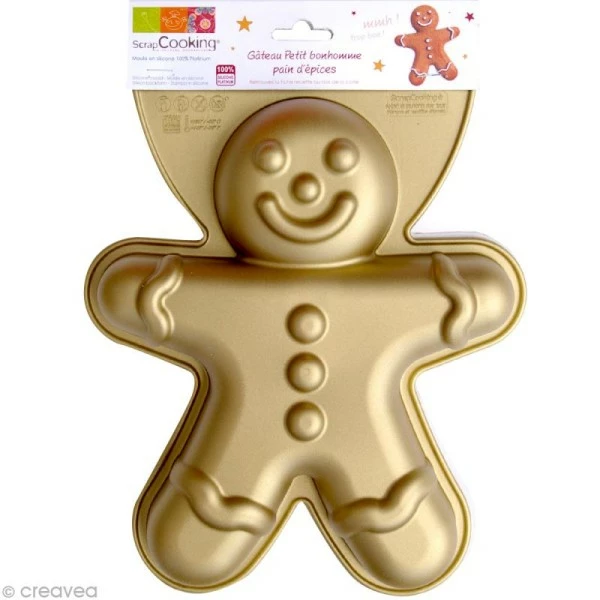 Grâce à ce moule en silicone Bonhomme de pain d’épices, réalisez un gâteau de Noël en forme de bonhomme pain d’épices ! Le moule vous est livré avec une carte recette pour réussi à coup sûr votre gâteau.