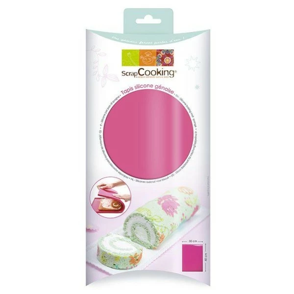 Pour réaliser des génoises, biscuits joconde, dacquoises et bien d’autres biscuits, le tapis en silicone à rebords de ScrapCooking mesure 30 cm x 40 cm et est très pratique! Il peut très bien être utilisé avec d’autres aliments pour une cuisson au four, vous permettant ainsi de garder votre four et vos plaques propres. En silicone 100% platinium, il résiste aux températures de -40°C à +230°C et ne contient pas de peroxyde, sans bisphénol A et sans Phtalates. Dimension40 cm x 30 cm