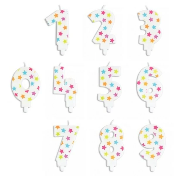 Avec ces bougies d’anniversaires de ScrapCooking Party, fêtez les anniversaires de vos amis et de votre famille à tout âge ! 10 bougies chiffres 0 1 2 3 4 5 6 7 8 9. Taille d’une bougieenviron 7 cm.