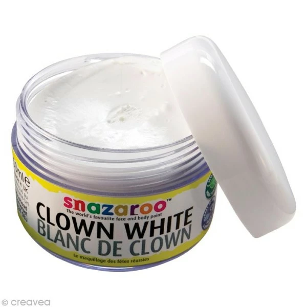 Info pratiquenon toxique, le maquillage clown blanc est facile à démaquiller.