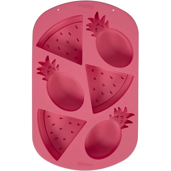 Créez des petits gâteaux originaux avec le moule fruits de la marque Wilton. Pour toutes vos créations gourmandes sur le thème de l’été, ce moule sera parfait pour vos recettes et facile d’utilisation grâce a sa matière permettant un démoulage facile. Il résiste à la cuisson mais également au lave vaisselle.
